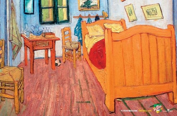 «Спальня в Арле» Винсента Ван Гога и реклама бразильского журнала Placar Magazine, посвященного футболу