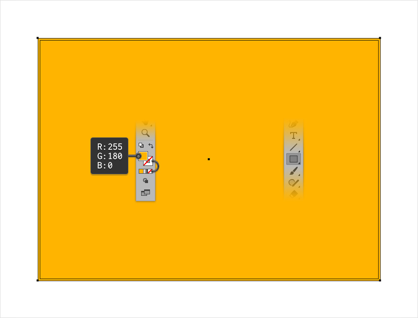 При помощи инструмента Rectangle/Прямоугольник (M) создайте фигуру с заливкой цвета R=255 G=180 B=0 размером в 870 x 630 px. Разместите прямоугольник так, чтобы он перекрывал холст.