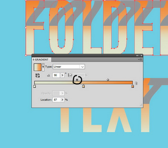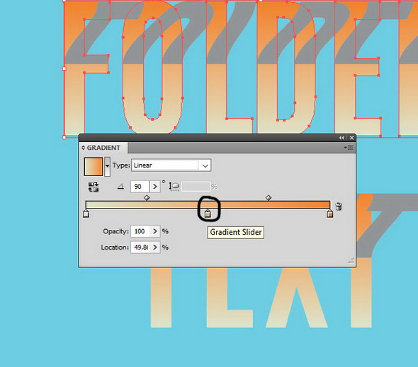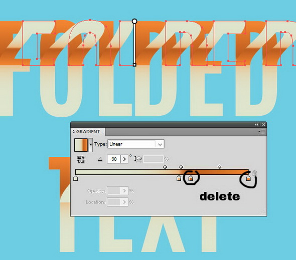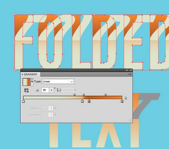 Примените тот же градиент ко всем буквам с эффектом складок.