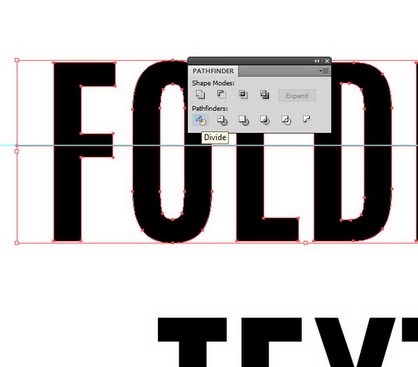 Выделите линию, которую вы только что создали, вместе с текстом. В палитре Pathfinder / Обработка контуров нажмите Divide / Разделение.