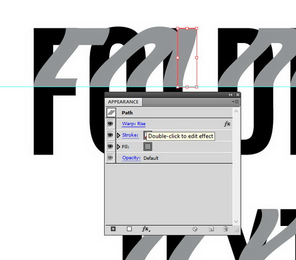 В нашем примере вы можете заметить, что L нужна легкая корректировка. Выделите ту букву, которая этого требует, и при помощи палитры Appearance / Оформление (Shift + F6) прибегните к опции Warp > Rise / Деформация > Подъем. Нажав на это, вы сможете скорректировать положение отслоенной верхушки.