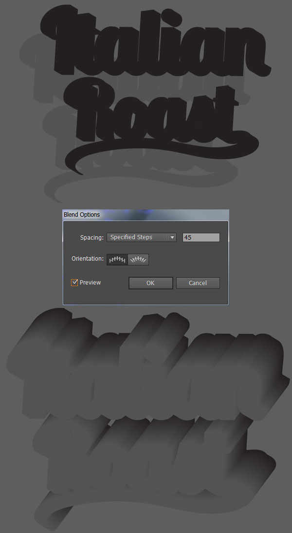 В этом уроке мы будем создавать текст с 3D-эффектом в Adobe Illustrator. Дизайн будет выполнен в стиле винтажных упаковок и логотипов. Мы будем пользоваться эффектами 3D, инструментом Переход, и другими приемами. Заварите себе чашечку кофе и приступаем к работе!