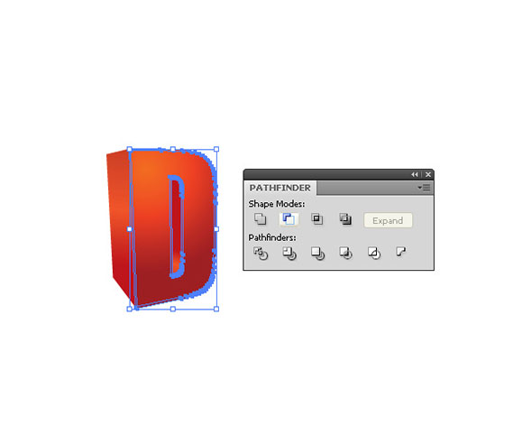 Удерживая нажатой клавишу Shift, нажмите на копию кнопки «D», чтобы добавить её к нашему выбору и нажмите кнопку Пересечение Intersect в панели Pathfinder.
