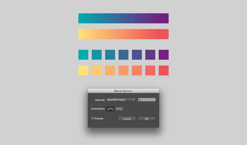 2. Цвета из инструмента Переход (Blend)