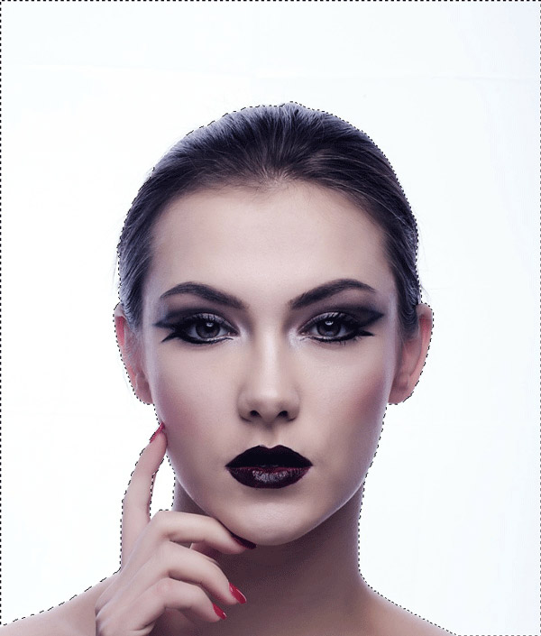 Откройте файл с изображением женщины. Инструментом Quick Selection/Быстрое выделение выделите белый фон вокруг головы.