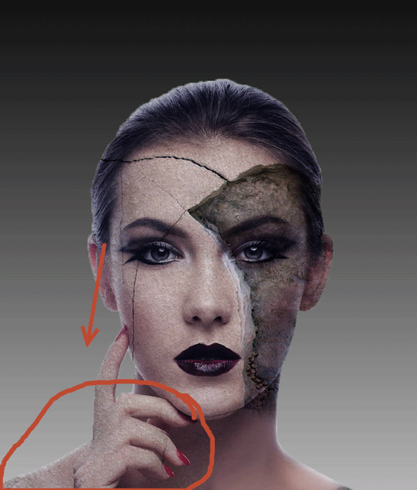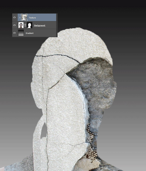 Вернитесь в наш документ с девушкой и вставьте текстуру (Ctrl + V). Удерживая Alt, кликните между текстурой и слоем с девушкой, чтобы замаскировать текстуру по контуру головы.