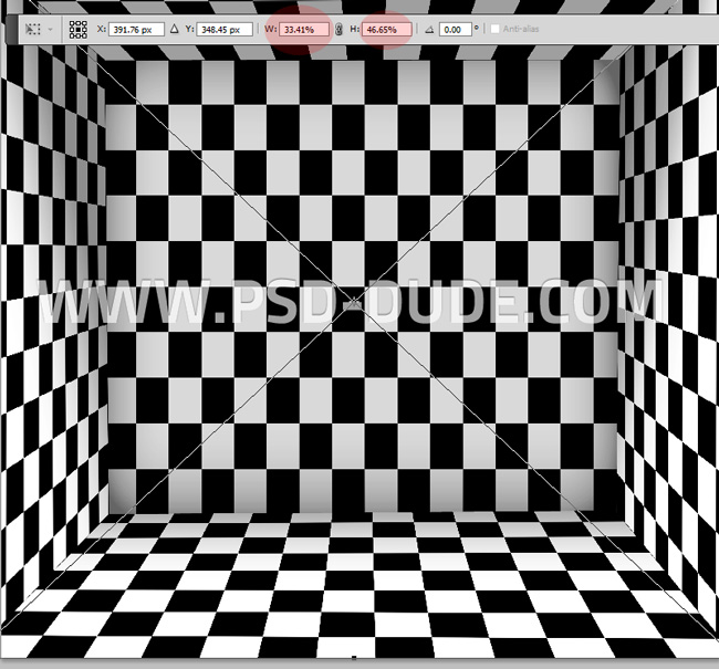 Откройте изображение Комнаты в клетку и разместите его в нашем файле PSD. Нажмите Control-T и масштабируйте файл до нужных размеров.