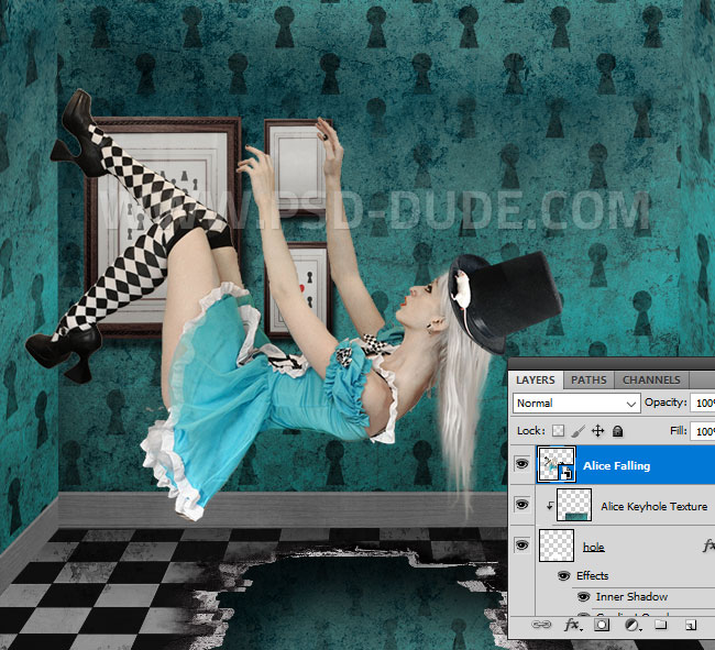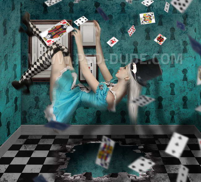 В этом уроке мы будем работать над фотоманипуляцией на тему Алисы в Стране Чудес. Это будет тот самый момент, когда Алиса проваливается в кроличью нору, и нам предстоит воссоздать это падение в Adobe Photosop. Мы будем работать с масками, стилями слоя, корректирующими слоями, смарт-объектами, тенями, светом и перспективой!