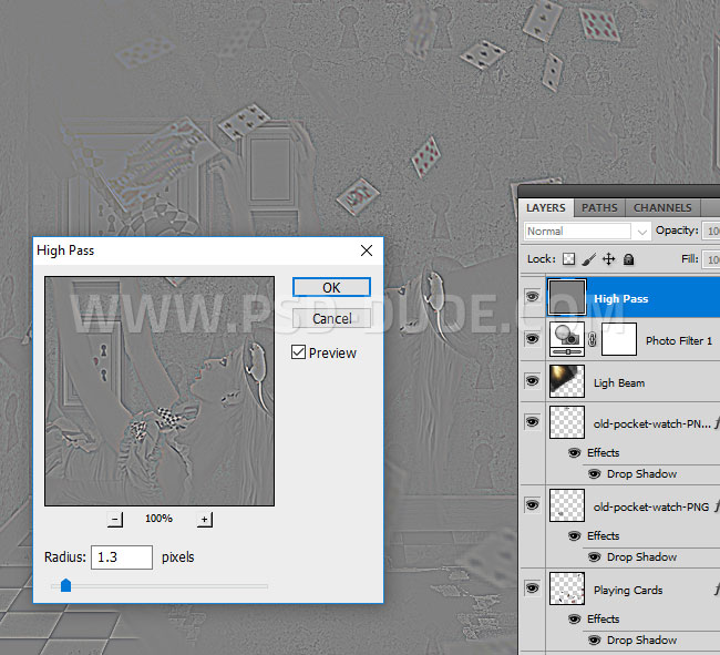 Укажите слою с эффектом High Pass режим наложения Soft Light/Мягкий свет. При желании, вы можете добавить света и теней, используя в этом слое инструменты Burn/Затемнение и Dodge/Осветление.