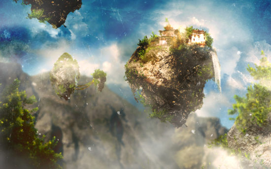 Фотоманипуляция с парящим островом в Adobe Photoshop