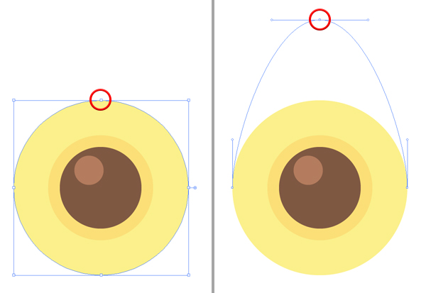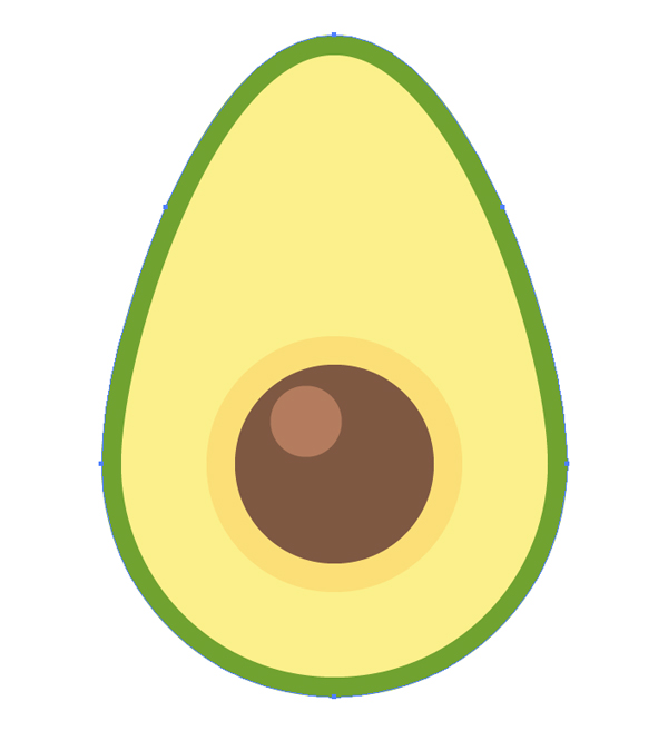 Инструментом Direct Selection/Прямое выделение (A) кликните по верхней точке большого круга, чтобы выделить ее. Теперь потяните точку вверх, чтобы создать форму авокадо.