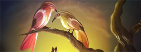 Для завершения композиции добавляем бабочек и маленьких птиц. Изменяем цвет птиц и бабочек, чтобы иллюстрация не была однообразной.