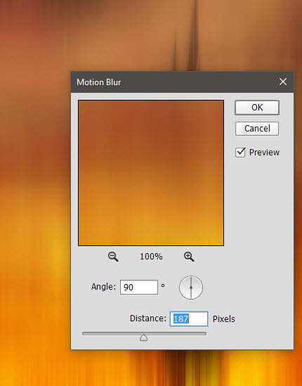 Вновь создайте слой-копию всех видимых (Ctrl + Shift + Alt + E), и на этот раз примените эффект Motion Blur/Размытие в движении (Filter > Blur > Motion Blur/Фильтр>Размытие>Размытие в движении). Укажите следующие параметры: