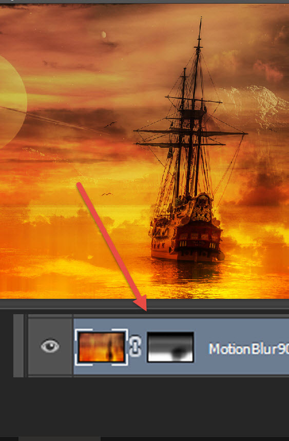 Укажите маску слою с эффектом Motion Blur/Размытие в движении и скройте указанные ниже области.