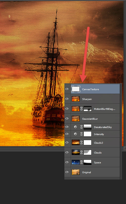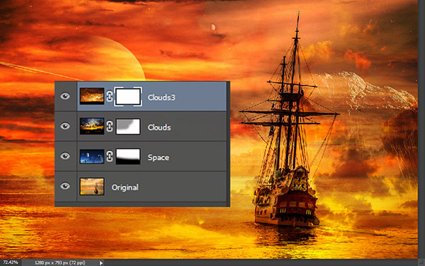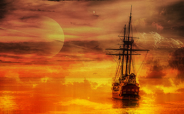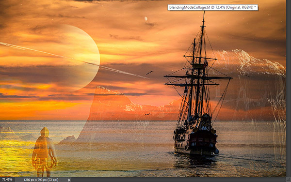Откройте файл «Корабль». Это будет база нашей работы, на нее мы будем накладывать остальные изображения в режимах наложения.