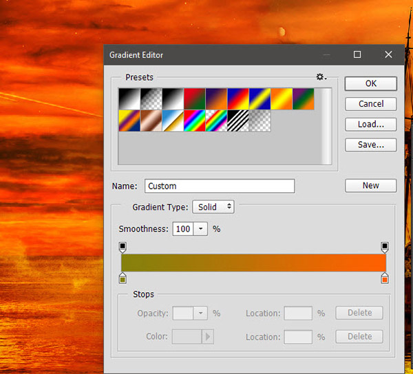 Теперь давайте добавим работе остроты. Создайте корректирующий слой Gradient Map/Карта градиента (Layer > New Adjustment Layer > Gradient Map/Слой>Новый корректирующий слой>Карта градиента), укажите параметры как показано ниже и смените режим наложения этого слоя на Soft Light/Мягкий свет.