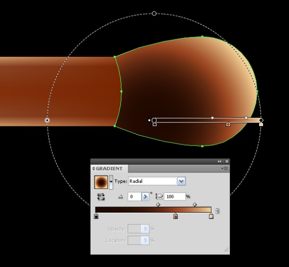 Заполните спичечную головку радиальным градиентом от темно-коричневого цвета до коричневого более светлых оттенков.