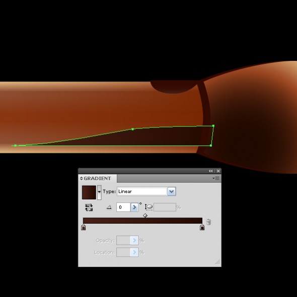 Скопируйте этот прямоугольник и вставьте его на передний план (Ctrl + C, Ctrl + F). Теперь немного уменьшаем высоту прямоугольника и заливаем его новый линейный градиент. Оттенки коричневого на этом прямоугольнике темнее, чем на нижнем прямоугольнике.