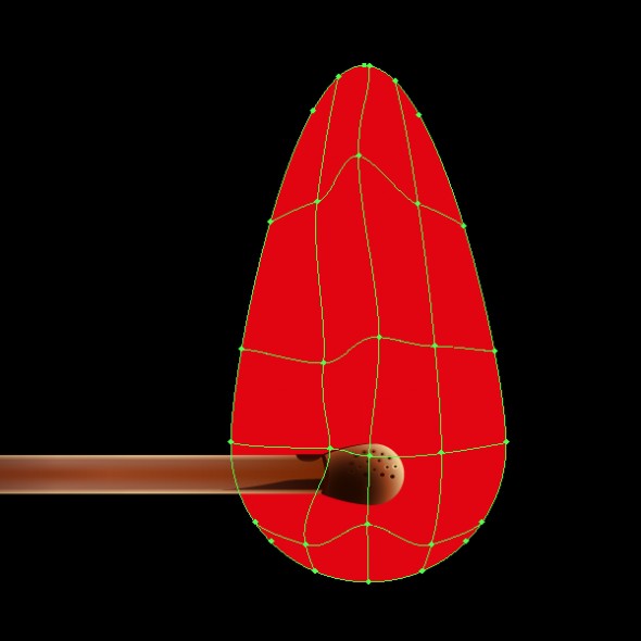 Создание пламени. Возьмите Ellipse Tool (L) и создайте круг. С помощью Direct Selection Tool (A), потяните верхнюю опорную точку вверх. Форма пламени должна быть размещена ниже основания спички.