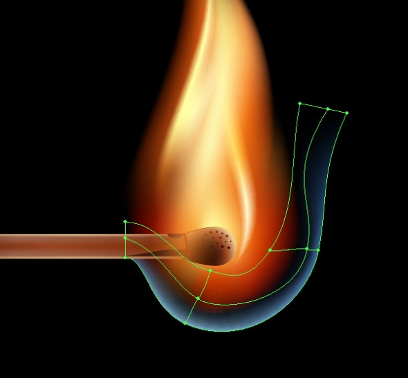 Теперь мы приступаем к созданию пламени спички. На данном этапе, вы должны узнать одно важное свойство: если черные объекты перекрывают другие и в палитре Blending mode установлен режим Screen, они становятся прозрачными в режиме RGB.