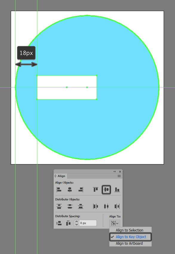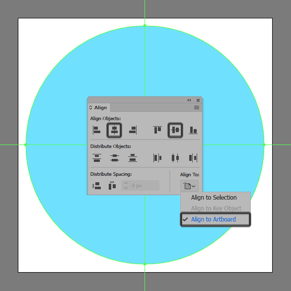Нарисуйте круг размером 120 x 120 px при помощи инструмента Ellipse/Эллипс. Укажите кругу заливку цвета #71E1FF и отсутствие обводки. Выровняйте круг по центру относительно рабочей области при помощи указанные ниже иконок палитры Align/Выравнивание.