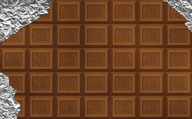 В этом уроке мы будем рисовать на шоколаде. Это простой и сладкий урок для тех, кто начинает пользоваться Adobe Photoshop. Мы создадим форму плиточки шоколада при помощи стилей слоя, добавим на нее текст или изображение, затем сохраним как узор. После чего в новом документе из этого узора создадим большую плитку и при помощи корректирующий слоев укажем ей шоколадные цвета. В качестве финальных штрихов добавим фольгу по краям документа.