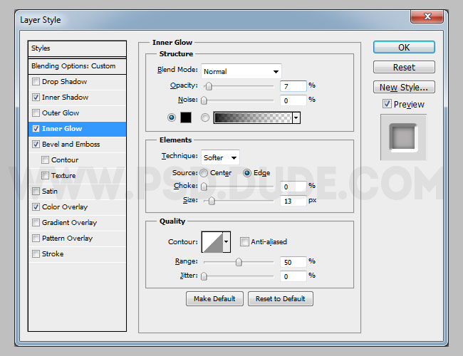 А также стиль слоя Inner Glow/Внутреннее свечение.