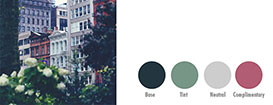 Составьте свою палитру из основного цвета, оттенка этого цвета, нейтрального цвета и комплиментарного цвета. Это даст вам наибольшее количество вариантов. В приведенном ниже примере вы можете увидеть пример такого выбора. Легко ли выбрать такие цвета без вдохновляющей фотографии?