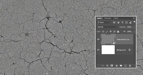 Создайте новый документ размером 950 x 650 px, поместите в документ текстуру асфальта (AsphaltDamaged0043). При необходимости масштабируйте текстуру.