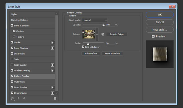 Теперь вы можете вернуться к стилю Pattern Overlay/Перекрытие узора и переместить узор как вам нравится. Для этого кликните внутри документа и потяните куда хотите.