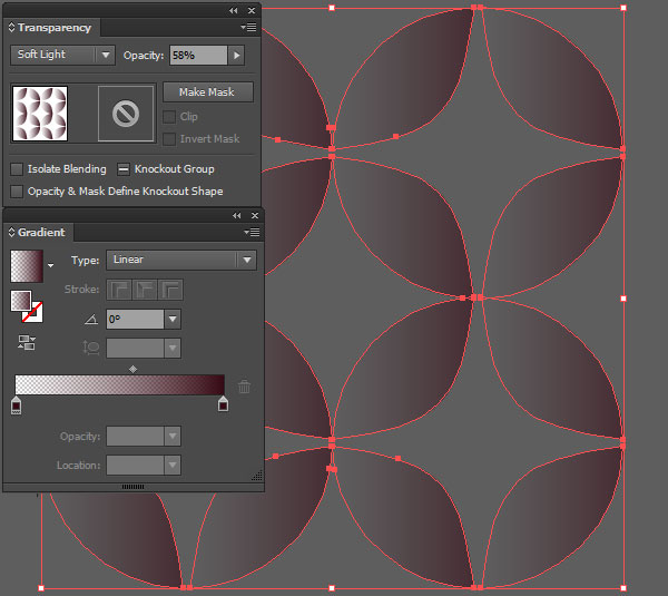 Для внутренних деталей узора нам понадобится две группы градиента. Для начала используйте такой же линейный градиент что и выше, только укажите 90° Angle/Угол. Укажите Blend Mode/Режим наложения Soft Light/Мягкий свет в палитре Transparency/Прозрачность.
