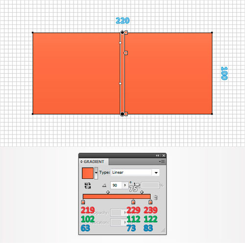 Используя инструмент Rectangle (M), создаем форму 220 х 100px. Заполняем ее с помощью линейного градиента, как указано на картинке ниже.