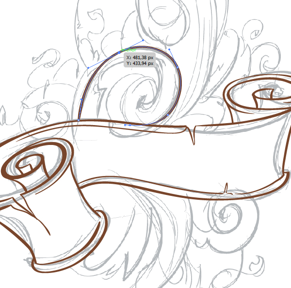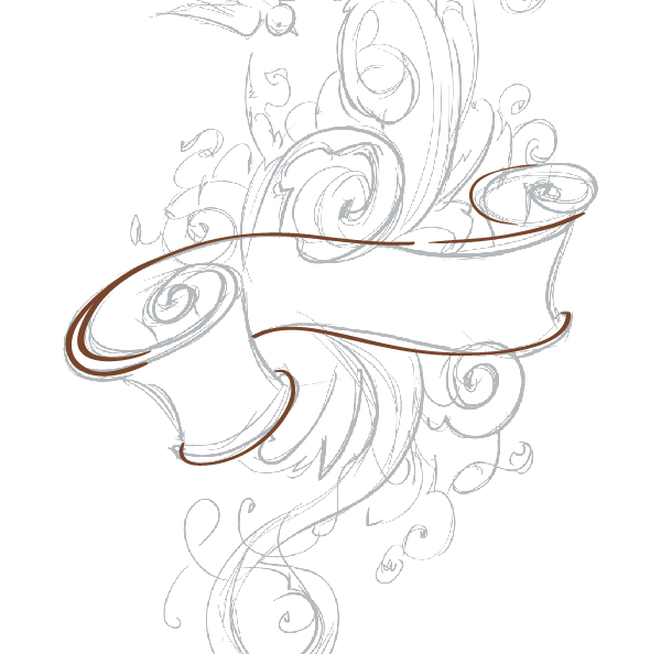Убедитесь, что Заполнение (Fill) цветом установлено на «0» и цвет Штриха (Stroke) установлен #78452B. Создаем новый слой и называем его «Ribbon». Начинаем чертить наш оригинальный эскиз для создания ленты. Когда лента будет закончена, создаем новый слой и называем его «Florals». Рисуем цветочные завитки на этом новом слое.
