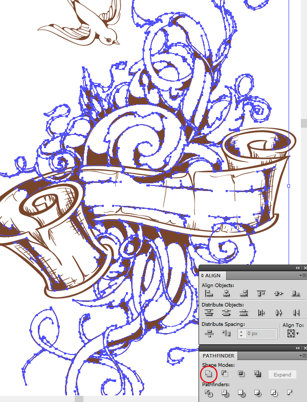 Выберите все объекты, которые есть на слое «Florals» и нажмите кнопку Unite в панели Pathfinder для создания одного сплошного объекта.