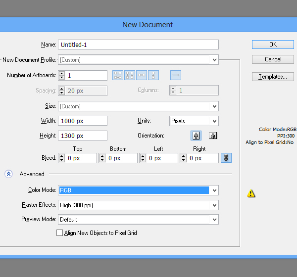 Создаем новый документ с размером 1000 x 1300px в цветовом режиме RGB.