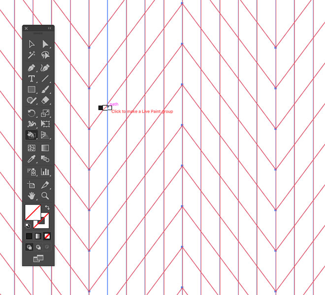 Выделите все наши линии и снимите черную обводку. Возьмите инструмент Live Paint Bucket/Быстрая заливка и кликните по линиям, чтобы преобразовать их в объект для заливки.