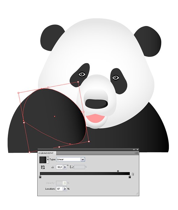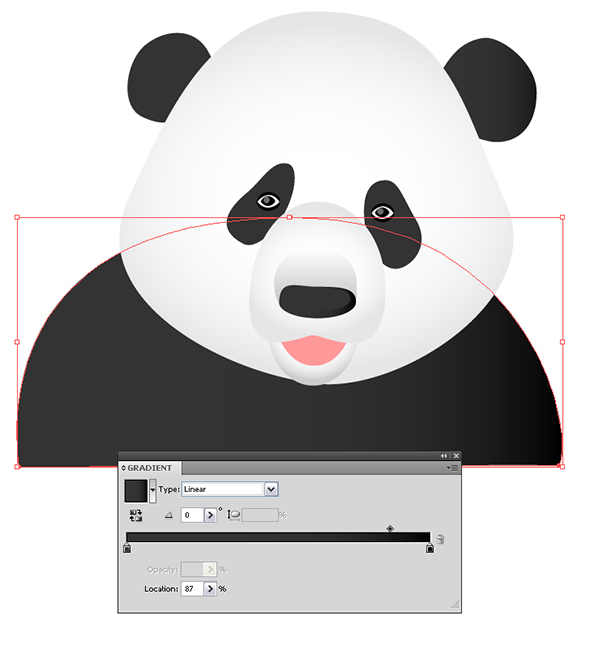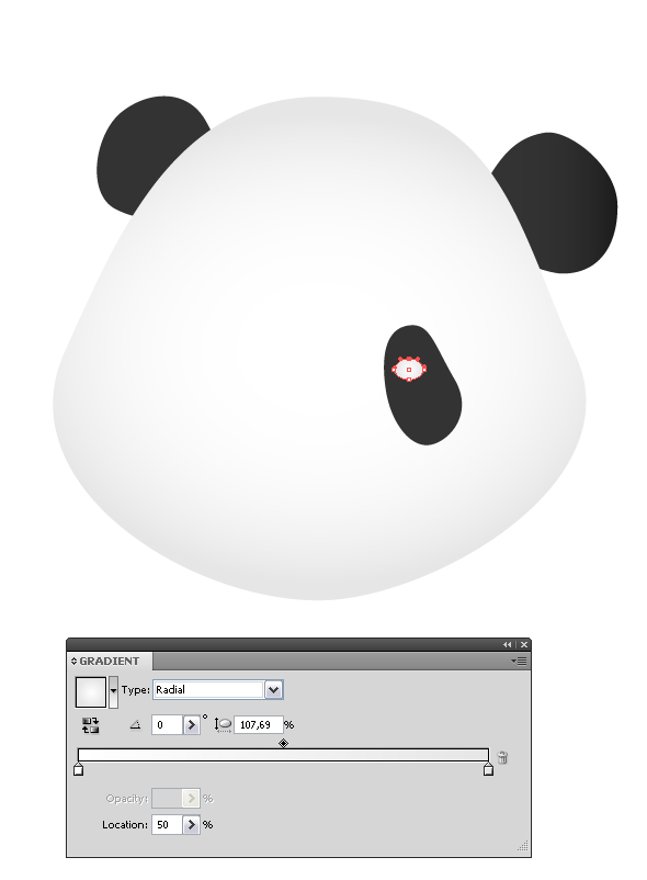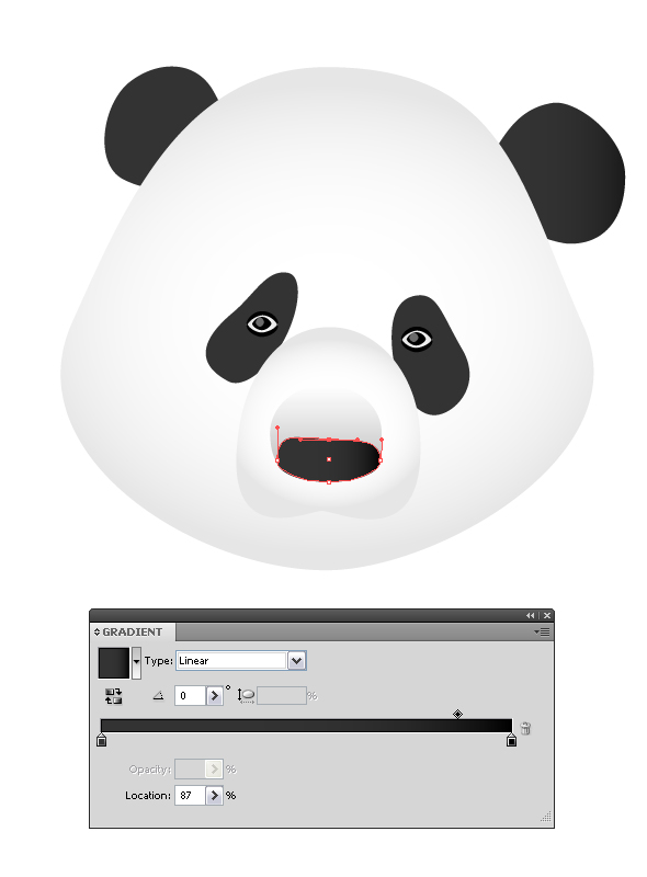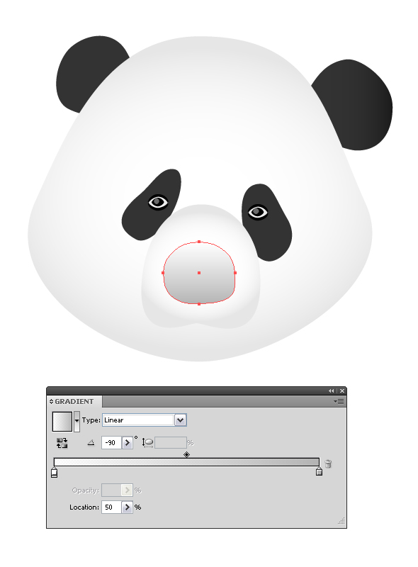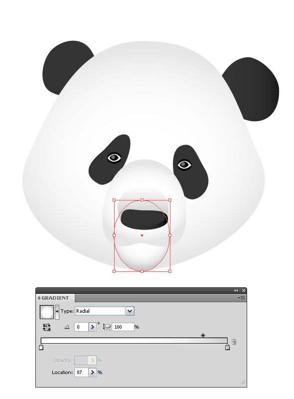 Нарисуйте овал при помощи инструмента Эллипс Ellipse tool (L) и добавьте ему радиальный градиент Gradient tool (G) , расположите его под слоем с носиком панды, нажав несколько раз Object > Arrange > Send to Back (Ctrl + Shift + [/Command + Shift + [ ):