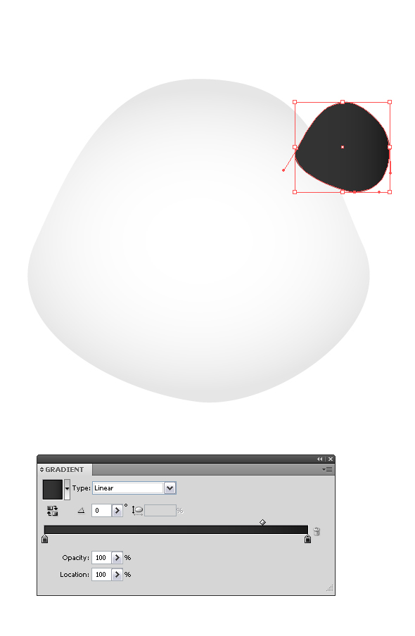 Создайте ещё один круг при помощи инструмента Ellipse Tool(L), измените его форму при помощи Direct Selection tool (A) и добавьте ему линейный градиент при помощи Gradient tool (G) от белого к серому, установив следующие значения: