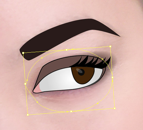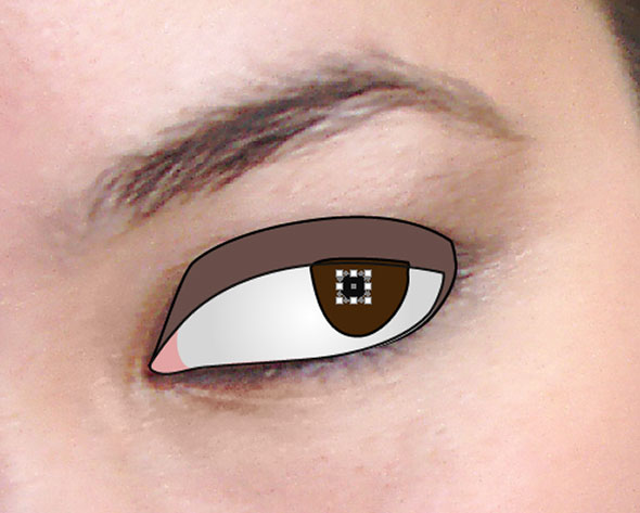 Теперь давайте добавим немного теней. Копируйте форму с контуром для глаза, которую мы создали в самом начале (Ctrl+C), затем расположите её под остальными слоями (Ctrl+]), немного увеличьте её и измените форму, затем перейдите на панели инструментов в Эффект->Стилизация->Растушевка (Effect->Stylize->Feather) и установите значение, которое считаете нужным (не забудьте поставить галочку возле поля «Просмотр»). У нас получился такой результат: