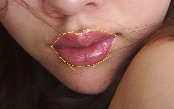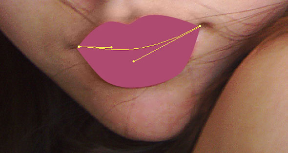 При помощи инструмента "Перо" (Pen Tool(P)) создайте форму для губ.