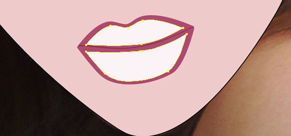 Копируйте форму для губ (CTRL+C) и расположите её сверху (CTRL+[), уменьшите её удерживая клавишу Shift и заполните белым цветом. При помощи инструмента «Ластик» (Eraser Tool (Shift+E)) удалите область посередине, чтобы у вас получился приблизительно такой результат: