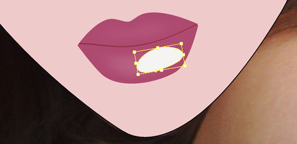 Таким образом мы сделали губы объемными, теперь давайте добавим блики. Для этого при помощи инструмента " Эллипс" (Ellipse Tool (L)) нарисуйте форму и немного измените её при помощи инструмента Direct Selection Tool(A)