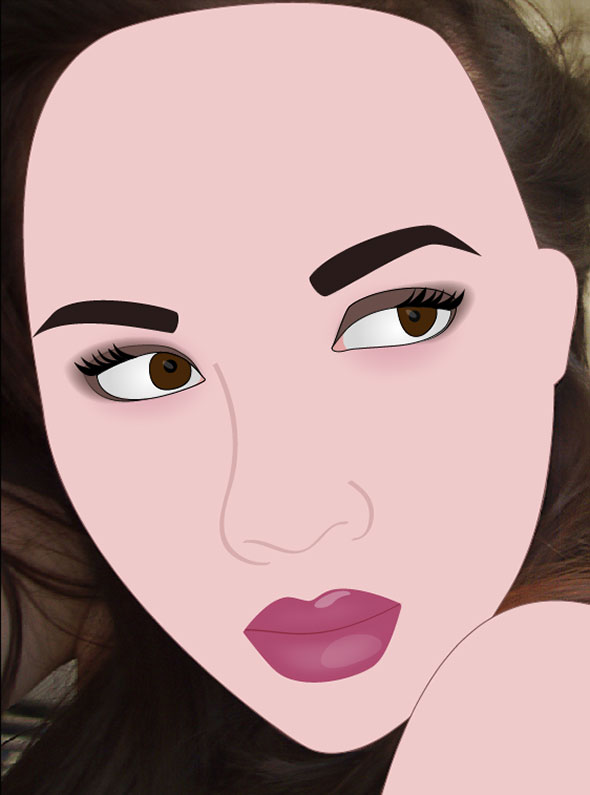 Рисовать нос мы будем при помощи инструмента "Перо" (Pen Tool(P)). Обведите контуры на фотографии (цвет: #d8adad). Сгруппируйте контуры и назовите группу «Nose».У нас получился такой результат: