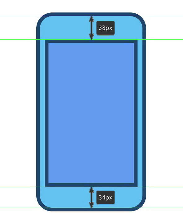 Поместите обе фигуры в центр смартфона, оставив зазор в 38 px между ними и главным контуром.