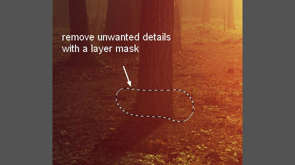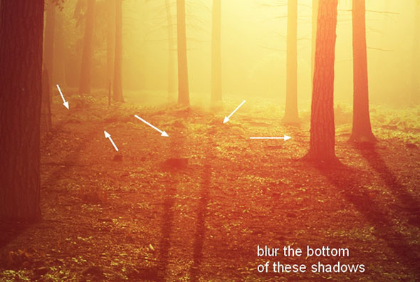 Выглядит так, словно уже все сделано, но не забудьте очень важную деталь: тени на деревьях. В оригинальном изображении свет мягкий, поэтому теней почти не видно. Но мы добавили куда более интенсивный свет, поэтому и тени должны быть видны лучше.