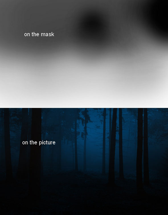 — Чем больше область укрыта туманом, тем меньше интенсивность тени. Чтобы показать это, можете размыть нижние части теней, что находятся ближе к фону.