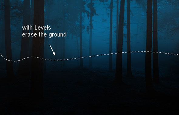 Используем корректирующий слой Levels/Уровни, чтобы осветлить область с туманом: