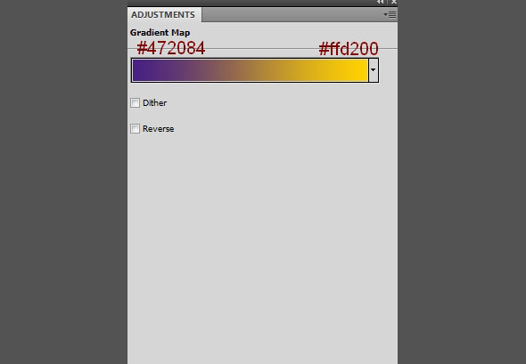 Чтобы превратить день в ночь, создайте корректирующий слой Gradient Map/Карта градиента. (Создаем слои над папкой с предыдущим эффектом).