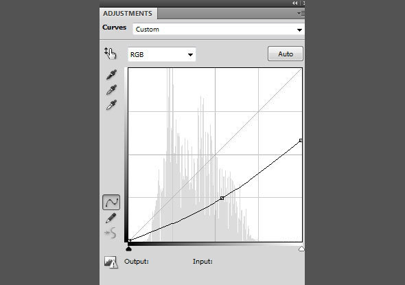 Используем корректирующий слой Curves/Кривые, чтобы увеличить темноту: