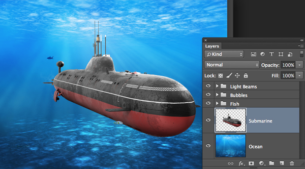 В этом уроке мы научимся создавать эффект глубины в Adobe Photoshop. Эта техника пригодится вам в работе над фотоманипуляциями, когда нужно органично вписать элемент в изображение с непрозрачность средой (такой как вода, туман, дым и т. д.) В нашем примере будет подводная лодка в море. Эффект будет создавать при помощи маскирующих средств.